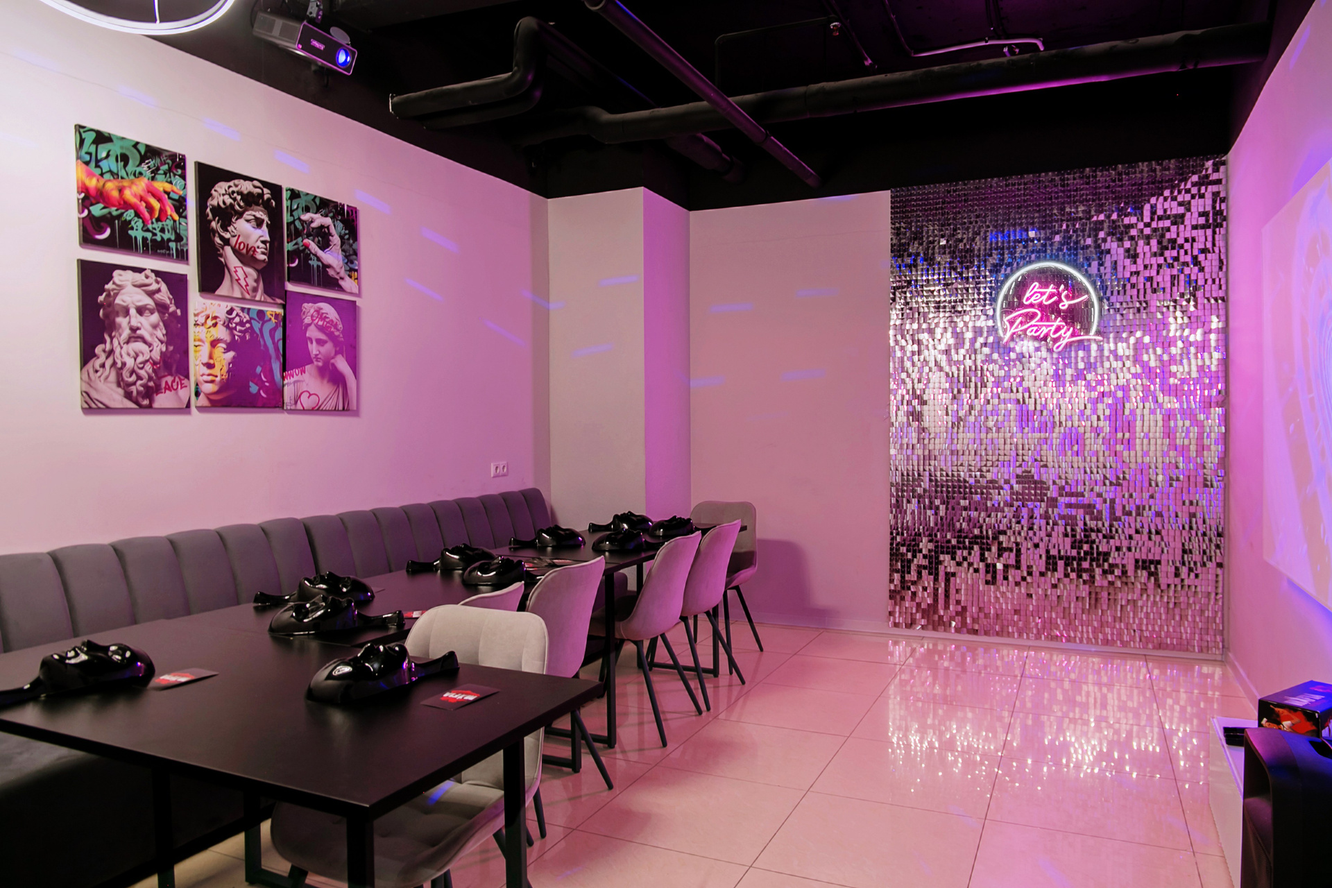 Зал Мини Пати / Little Party — камерное и стильное пространство для небольшой компании. Идеально подойдёт для вечеринок с друзьями, девичников, настольных игр, киновечеров или мини-корпоратива.